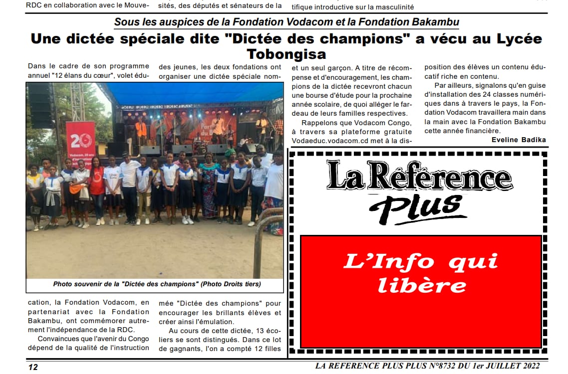 A l’occasion de la fête de l’indépendance de la République Démocratique du Congo, le joueur international congolais et président de la fondation qui porte son nom, Cédric Bakambu a , à travers sa fondation annoncé la première édition de la dictée des champions à Kinshasa le jeudi 30 juin prochain.